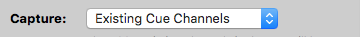 This window has pop-up menus for choosing what DMX channels will be captured into the cue and from what source the channels will be captured.