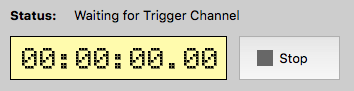 When a trigger channel is specified, press the Record button to begin waiting for the trigger channel to rise above zero. As long as the trigger channel is being received as zero, the time display will wait to start recording: