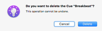 After confirmation of the delete operation, the cue will be removed from the cue list.