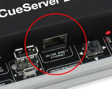 CueServer 2 is an Ethernet-based product. An Ethernet connection to a local network is required to program CueServer using the CueServer Studio 2 software. Additionally, Ethernet is required if a DMX-over-Ethernet protocol (such as sACN, Art-Net, or KiNET) is going to be used to input or output DMX over Ethernet, or to connect to button stations, use the CuePad iOS application or to remotely manage the device. Only if the CueServer has already been programmed and no Ethernet protocols are needed to run the show can the CueServer be used without a network connection.