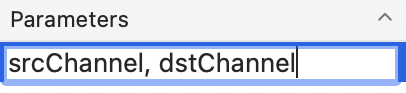 If the function will accept arguments, use the tab key to move the focus to the Parameters field.