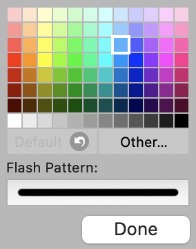 Select a color in the color palette to set a new indicator color, or select the flash pattern box to choose from a list of patterns.