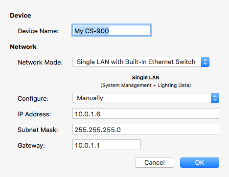 On CueServers with only a single Ethernet jack, this option is fixed to “Single LAN”.