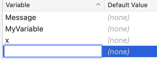 To update a variable’s name, or its current or default value, double-click on the field you wish to update.